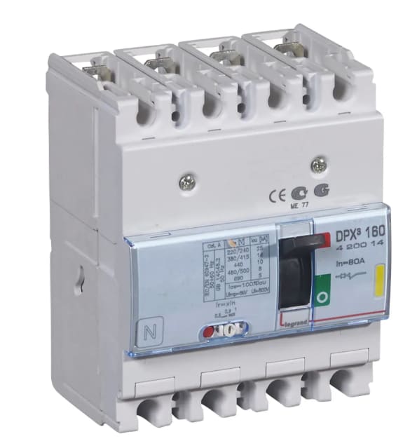 INTERRUPTOR TERMOMAGNETICO DPX3 160 4P, REG. de 64A a 80A 16kA/380-415 VAC 420014 Legrand